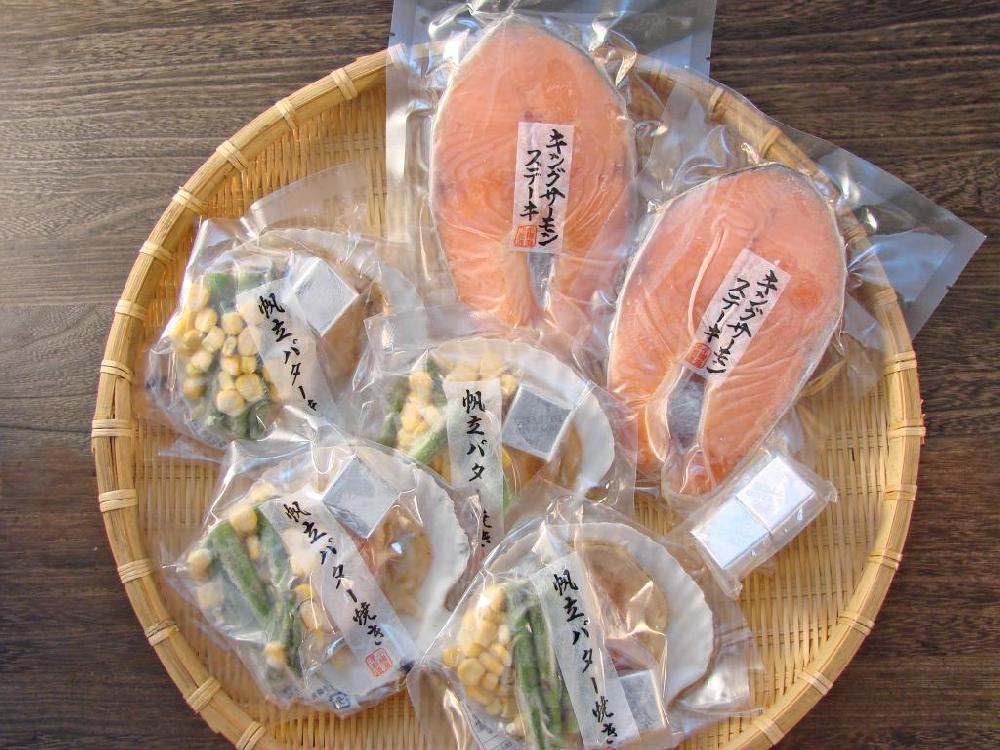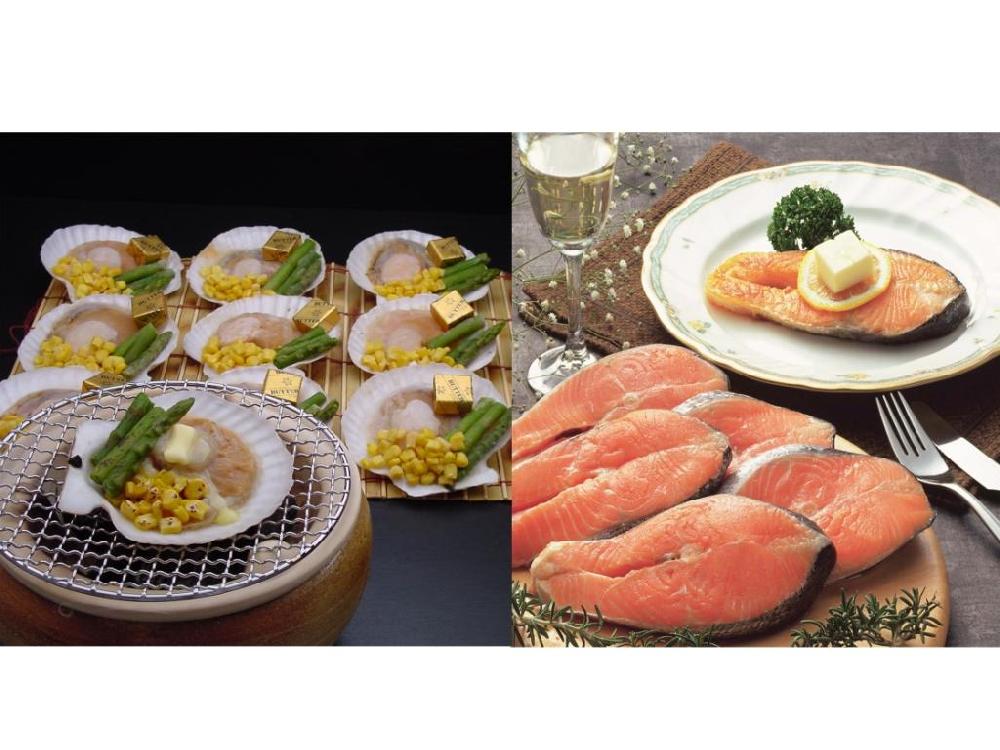 脂がのった肉厚の「キングサーモン」と北海道産の新鮮な帆立(バター焼きセット)を詰め合わせ致しました。